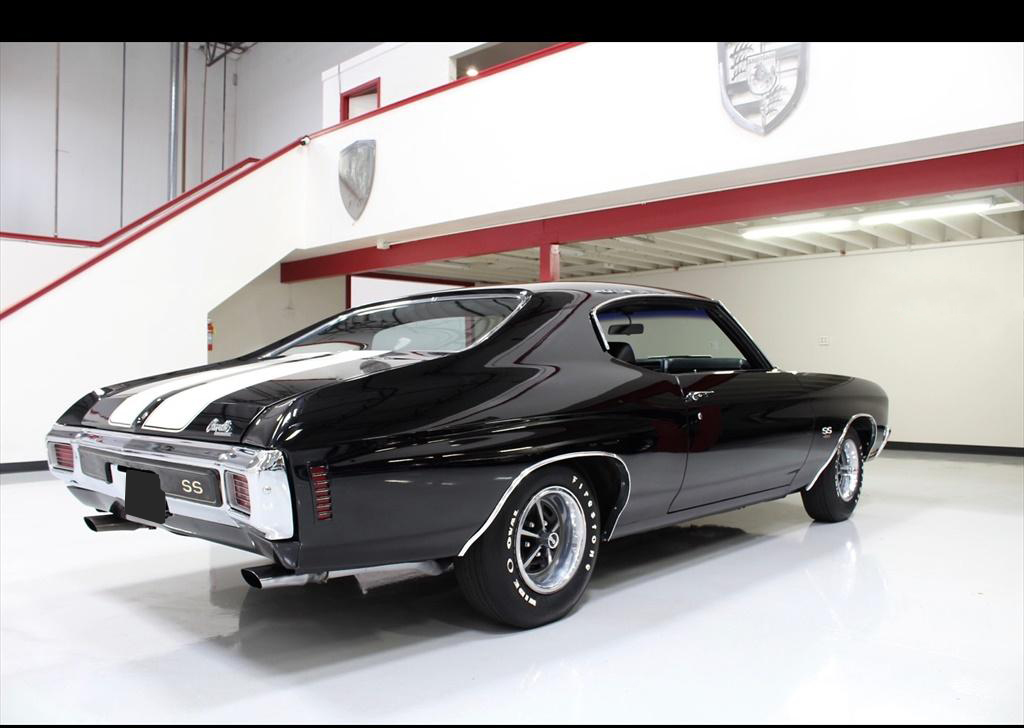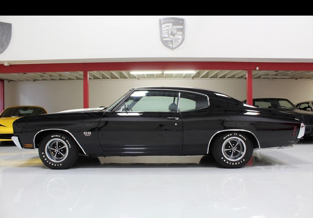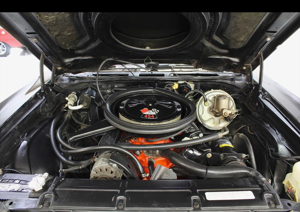 1970 Chevrolet Chevelle Super Sport in Tuxedo Black over Black Interior. Equipped with a 454ci V8 Engine mated to a Turbo 400 Automatic Transmission. This beautiful SS has been repainted once in it's original color. The car is believed to be an original LS5 car, but is now powered by a Warranty replacement CE block. Mileage on the odometer is believed to be original to the car. This was a highly optioned car with Factory Air Conditioning, Power steering, and Power disc brakes. 12 Bolt rear end with posi. AM/FM Radio with cassette player. Functional cowl Induction hood. Hood pins. Super Sport wheels wrapped in period correct Firestone tires. This SS is solid all around and drives incredible.