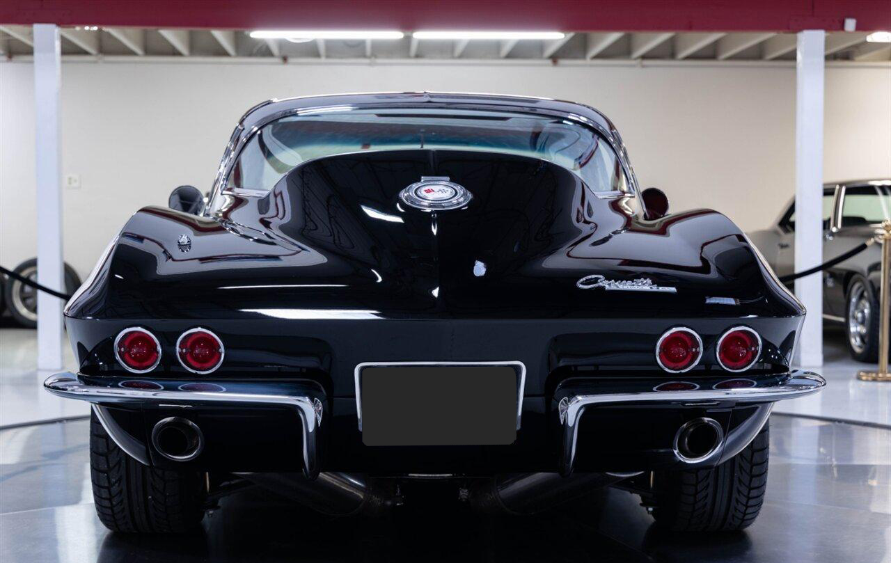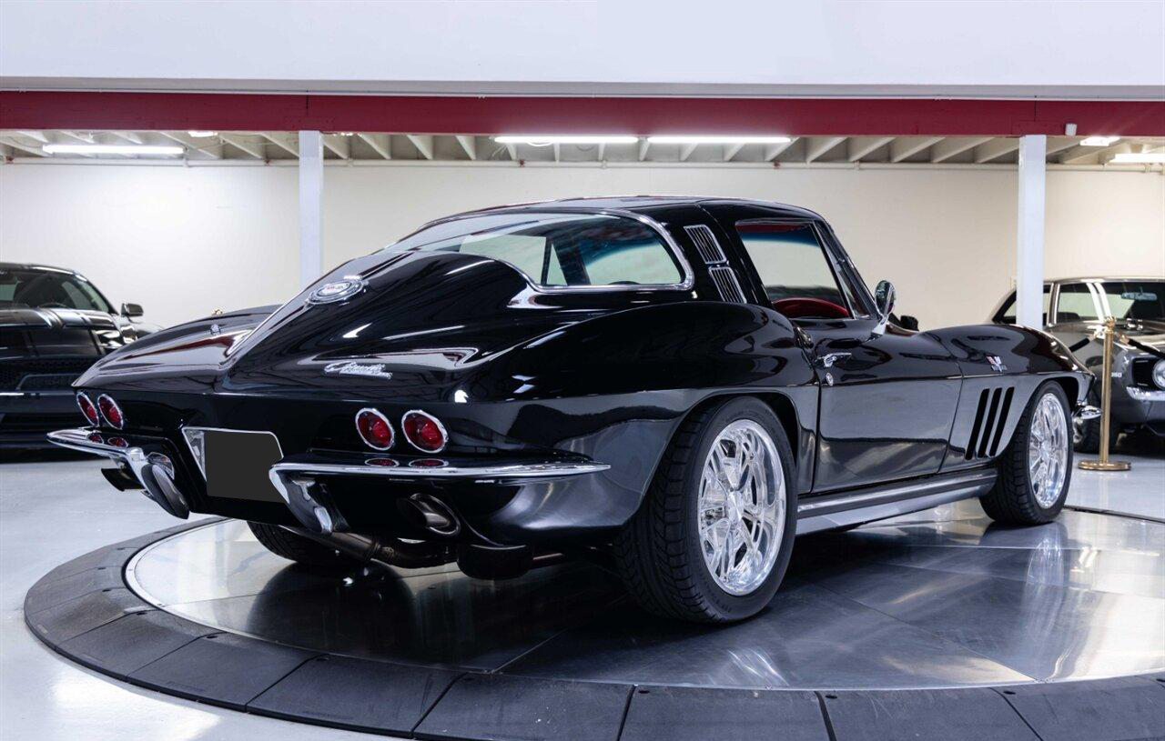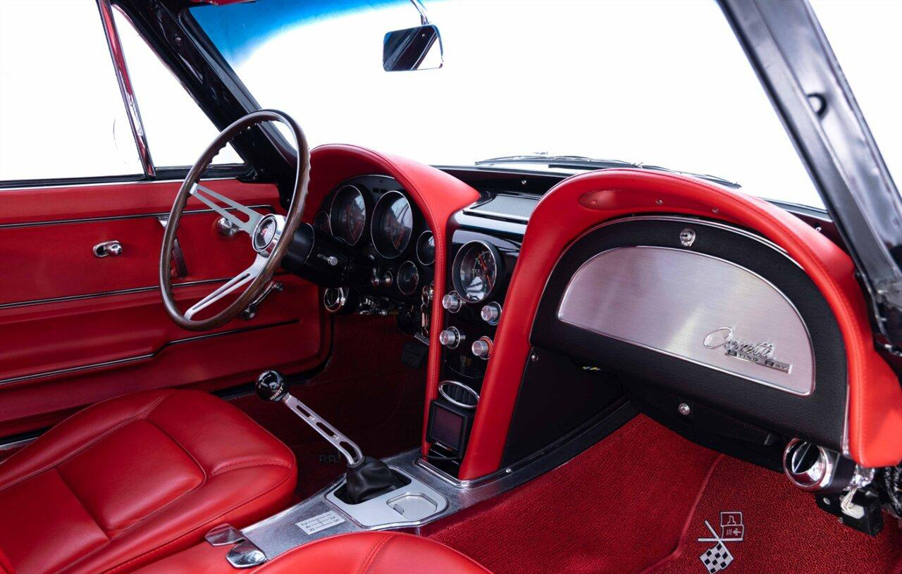 1965 Chevrolet Corvette Coupe in Raven Black over Red Interior. Equipped with a Fuel Injected 496ci Big Block Engine mated to a Tremec 5 Speed Manual Transmission. This incredible Pro Touring Corvette is a complete frame-off restoration. Features include: Holley Sniper Fuel Injection, Air Conditioning, Rack n Pinion Power Steering, 4 Wheel Wilwood Disc Brakes, Coilover Suspension, Ron Davis Aluminum Radiator, Sanderson Headers w/ Custom 3" Stainless Exhaust, MSD Ignition, Rockford Fosgate Components and Subwoofer, Custom 17" Wheels and more! This stunning Corvette is ready to be shown or driven.