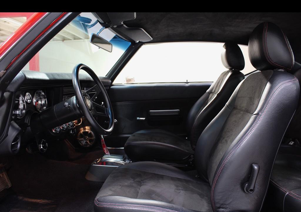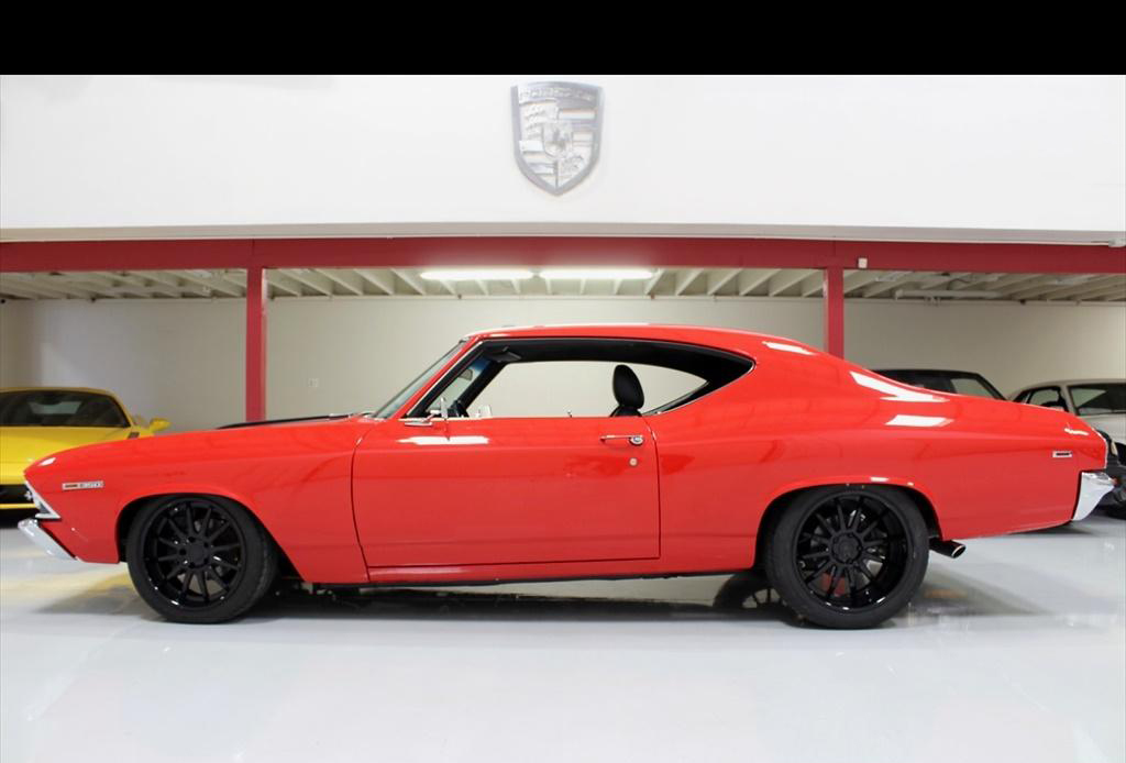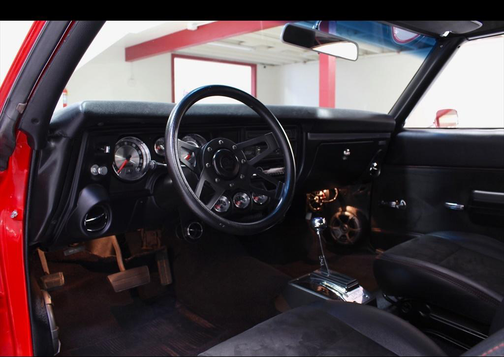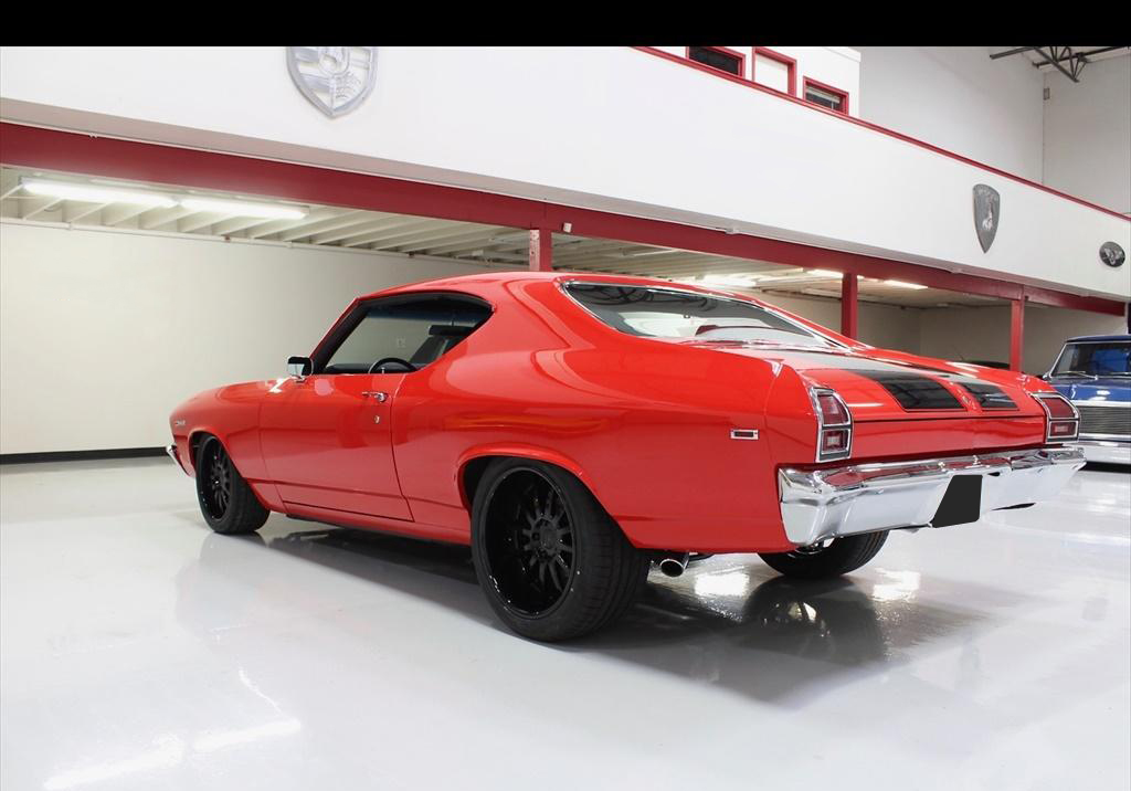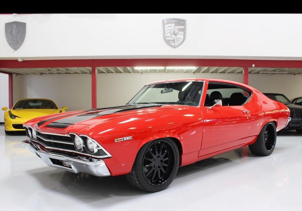 1969 Chevrolet Chevelle in Red over Black Custom Interior. Equipped with a 350ci Engine mated to a TH350 Automatic Transmission. This beautiful Chevelle is a fresh restoration that was just completed in early 2018, with less than 100 miles on the car since. Freshly built 350 with Comp Cam and Aluminum heads. Custom interior featuring red-stitched upholstery with suede inserts on the seats and door panels, Autometer aluminum instrument gauges, B&M shifter, and a stereo system with Sony CD player and Phoenix Gold speakers. Vintage Air A/C system. Power steering. Power disc brakes front & rear. Custom headers and exhaust. Quick Fuel carburetor. Aluminum radiator with electric fans. The buyer has the choice to go with the polished 17" American Racing wheels or Dub.1One 3-piece wheels. Either set will come with brand new tires on them.