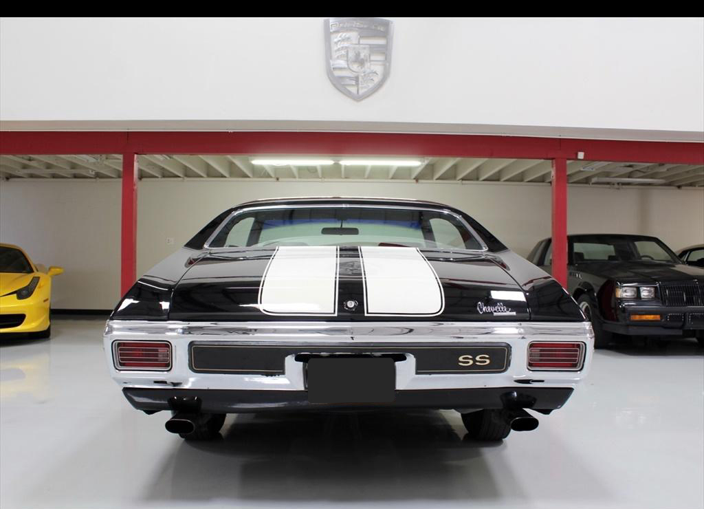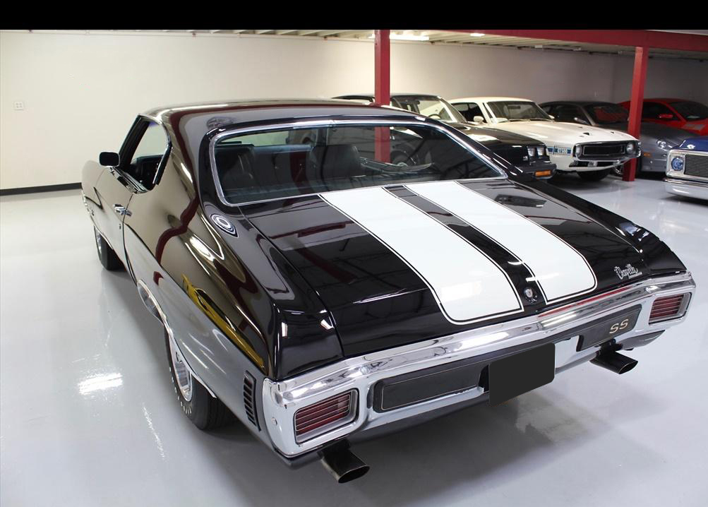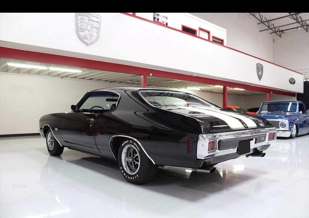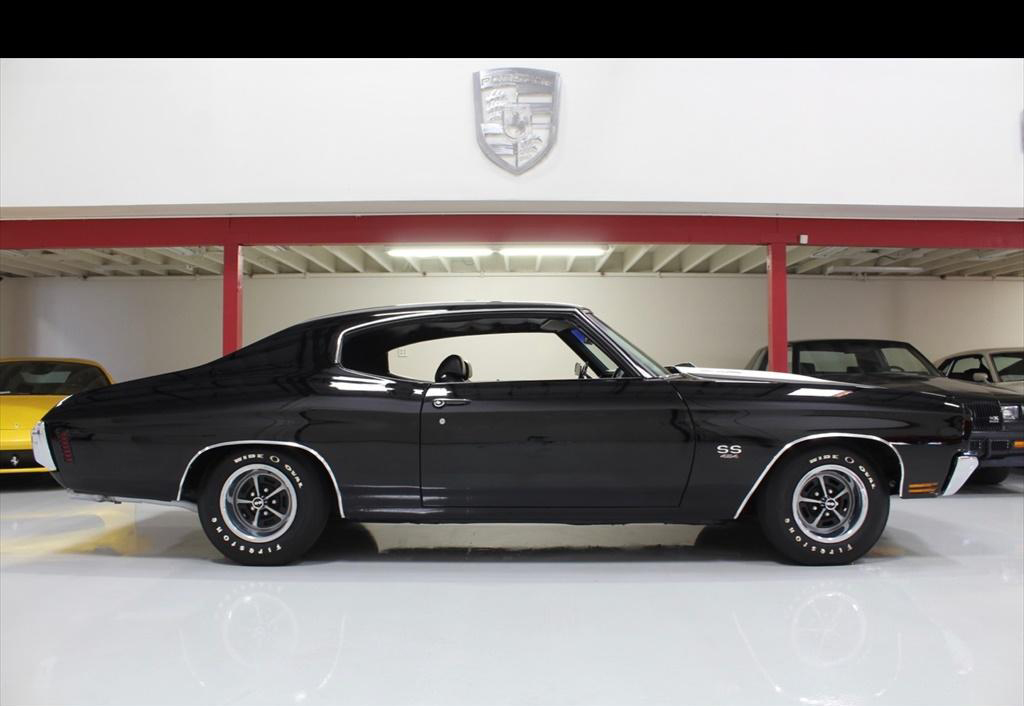 1970 Chevrolet Chevelle Super Sport in Tuxedo Black over Black Interior. Equipped with a 454ci V8 Engine mated to a Turbo 400 Automatic Transmission. This beautiful SS has been repainted once in it's original color. The car is believed to be an original LS5 car, but is now powered by a Warranty replacement CE block. Mileage on the odometer is believed to be original to the car. This was a highly optioned car with Factory Air Conditioning, Power steering, and Power disc brakes. 12 Bolt rear end with posi. AM/FM Radio with cassette player. Functional cowl Induction hood. Hood pins. Super Sport wheels wrapped in period correct Firestone tires. This SS is solid all around and drives incredible.