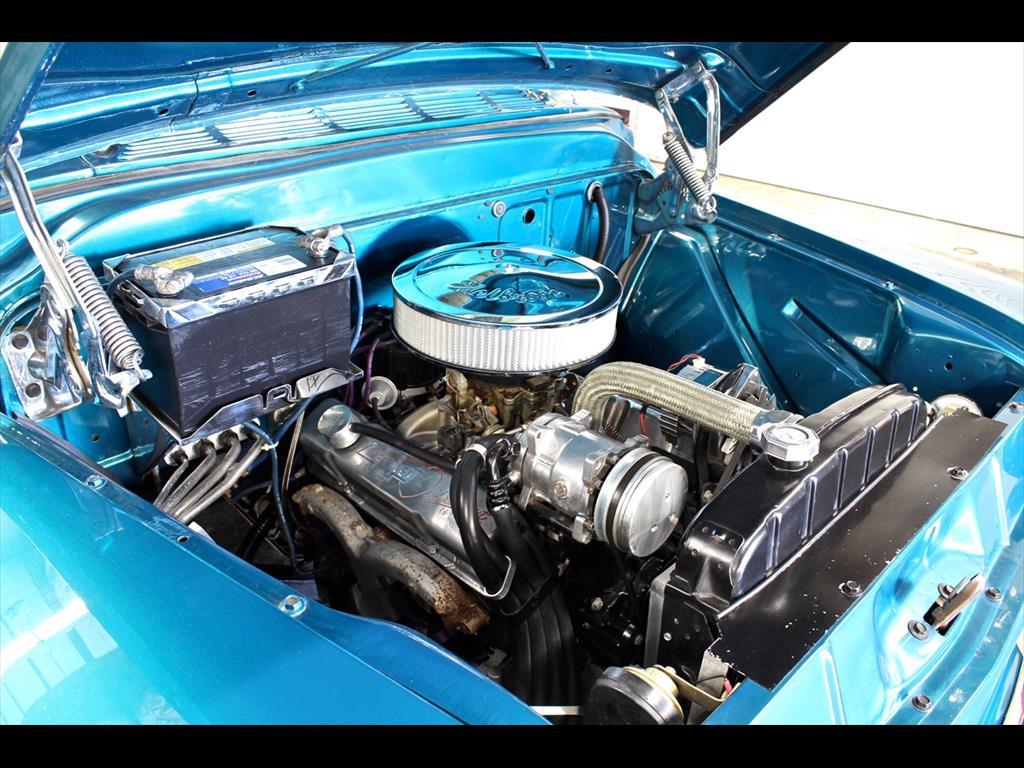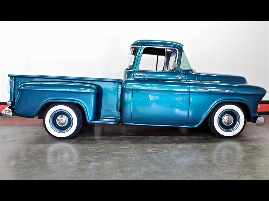 1956 Chevrolet 3100 Big Window in Harbor Blue over matching Interior with Black Vinyl seat. Equipped with a 307ci V8 Engine mated to a 700r4 Transmission. Independent front suspension. Coilovers. Rack & pinion power steering. Disc brakes. Tilt column. A/C blows cold. Stereo system with Clarion speakers. Brand new color matched wheels with center caps and beauty rings. Brand new 3" white wall tires. Brand new birdseye maple wood bed. TPI-Tech gauges. Fuel cell. This beautiful deluxe cab pickup is ready to be shown and driven.